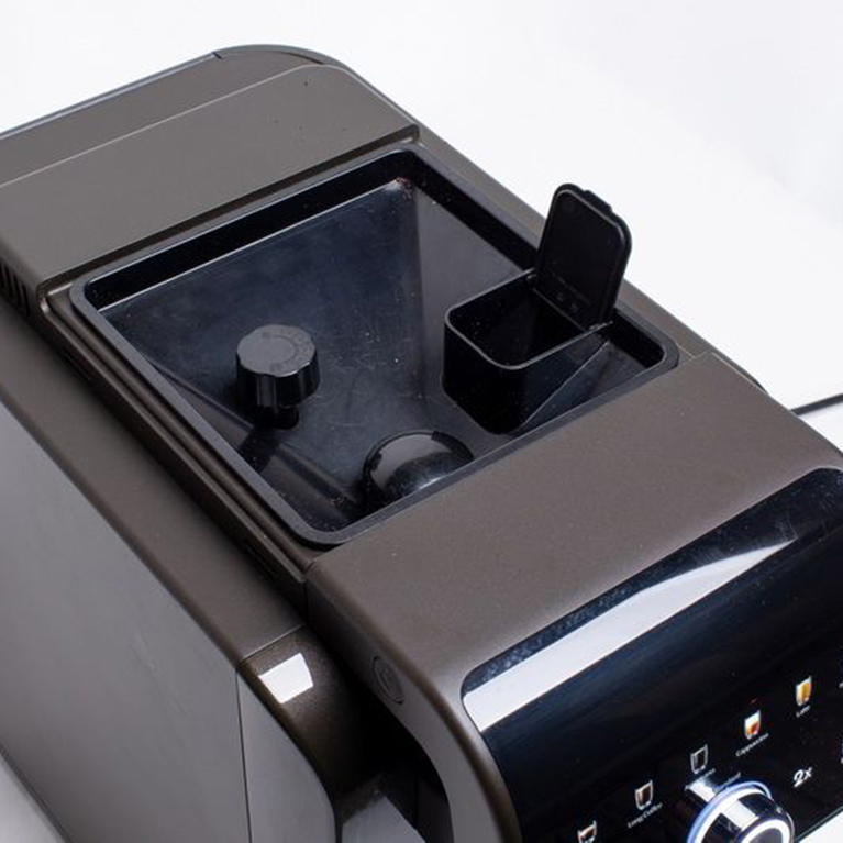 - Производительность: Объем бака для воды — 1,6 л, бункера для зерна — 250 г.