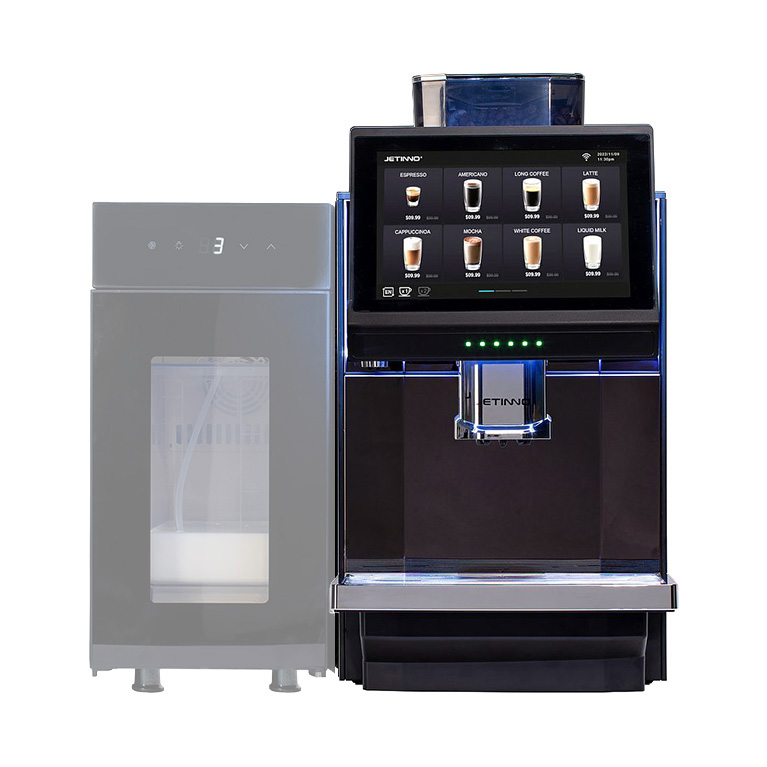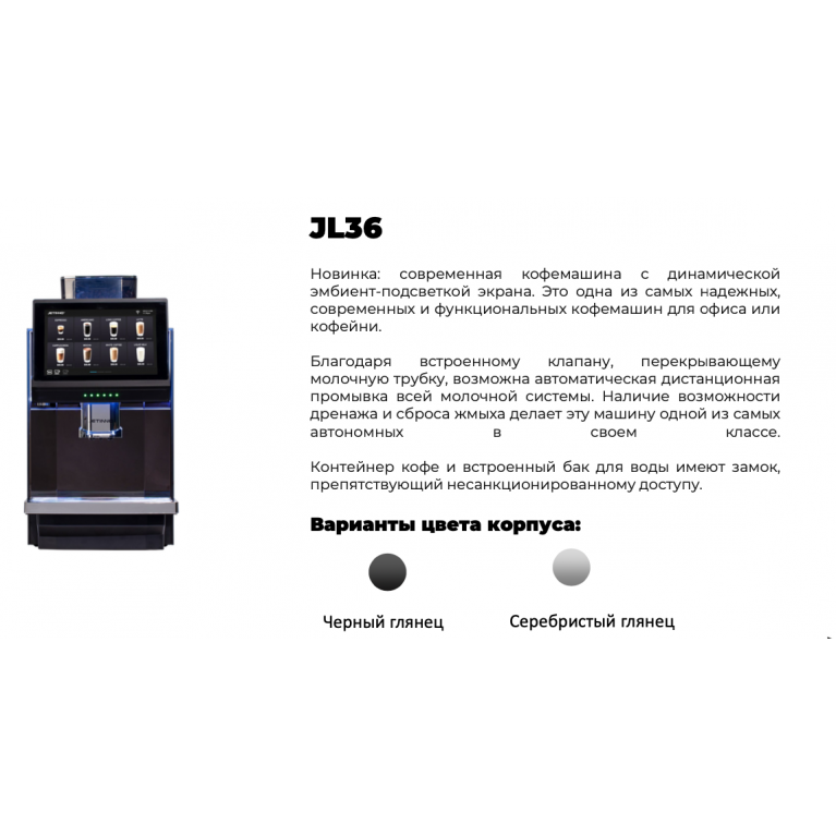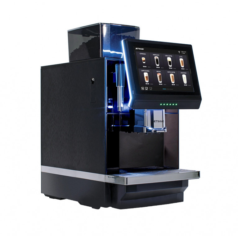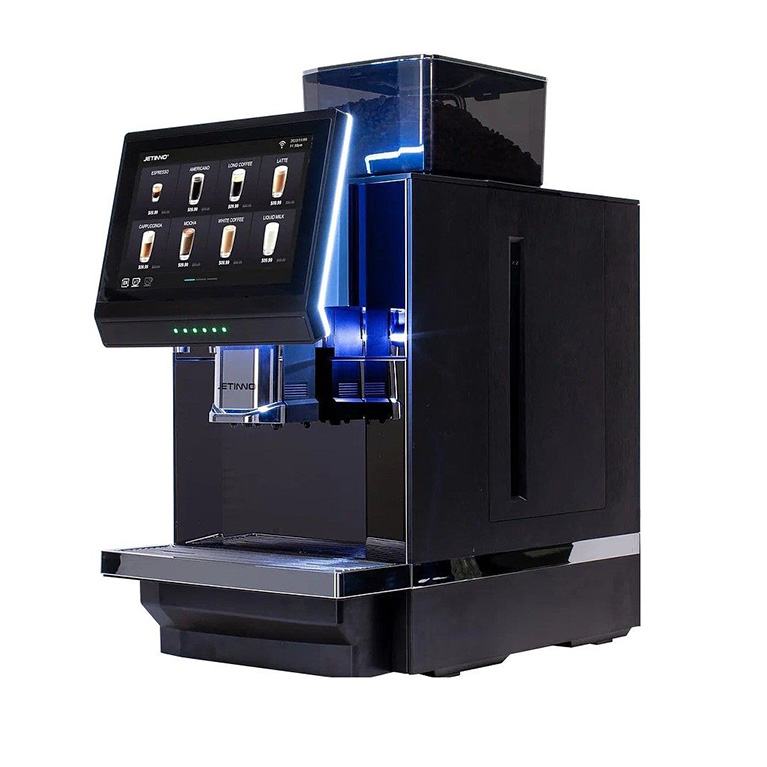 Кофемашина Jetinno JL36 — это новое слово в автоматическом приготовлении кофе, созданное для динамичных заведений и современных офисов. Ее сердце — инновационный 10-дюймовый сенсорный экран с динамической амбиент-подсветкой, который привлекает внимание и делает управление интуитивно понятным. Благодаря технологии удаленной телеметрии и управления через 4G/Wi-Fi вы можете отслеживать состояние машины, получать уведомления и настраивать ее параметры из любой точки мира. Высокая производительность до 200 порций в день, одновременное приготовление двух одинаковых напитков и широкая планограмма более чем из 10 напитков делают Jetinno JL36 идеальным решением для мест с высоким спросом. Это не просто кофемашина, а ваш интеллектуальный партнер в бизнесе.